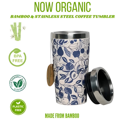 Organic Milk/Tea/Coffee Mug/Cup - Bamboo Fiber Travel Mug, Milk Drinking Cup with Silicone Lid & Sleeve, Coffee Mug for Office/Home/Car (480 ML; Pack of 1 Pcs)(BLUE
