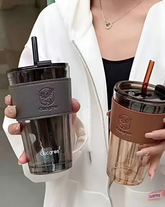 Glass Travel Sipper Tumbler Mug with Straw and Lid - 400ml-Pack of 1 - Tea and Coffee Fruit Milk Cup with Straw