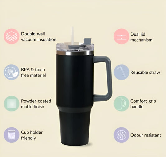Tumbler 1200ML (40oz) Stainless Steel Hot and Cold with Handle, Double Insulated Cup 100% Leak Proof Mug Cupholder for Gym, Travelling