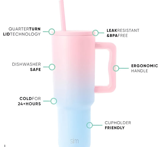 Tumbler with Straw and Cleaner | Stainless Steel Insulated Water Bottle, Double Wall Vacuum, Leakproof | Keeps Drinks Hot or Cold for Office, Home, Gym, Travel