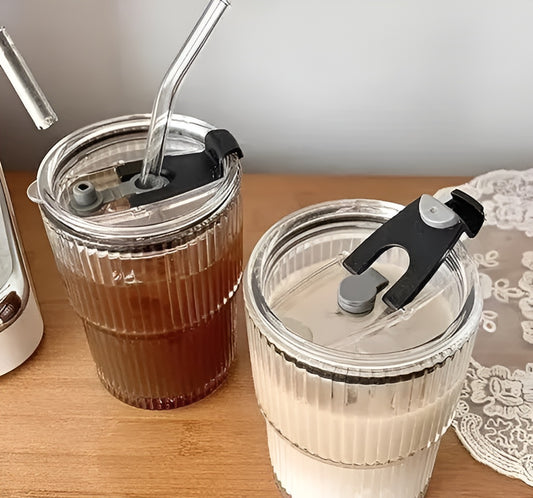 MYNA HOUSE Glass Cup with Lid & Straw – 450ml | Iced Coffee Cup | Leakproof Smoothie Glass