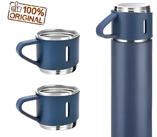 Vacuum Insulated Flask Gift Set – 500ml Bottle with 3 Cups for Hot & Cold Drinks !